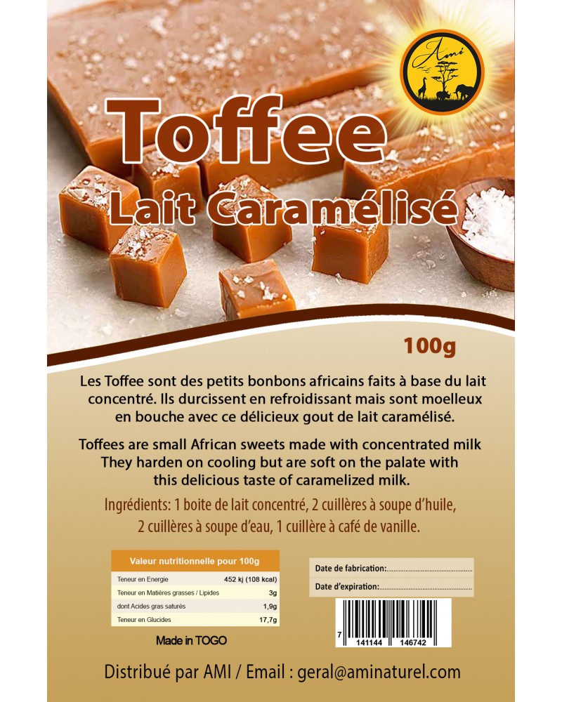 Les Toffee sont des bonbons africains fait a base du lait concentré. Ils durcissent en refroidissant mais sont moelleux en bouche avec ce délicieux goût de lait caramélisé.