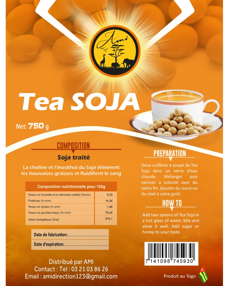 La choline et l'inosithol du Soja éliminent les mauvaises graisses et fluidifient le sang. - Préparation : Deux cuillères à soupe de Tea Soja dans un verre d'eau chaude. Mélanger puis tamiser à volonté avec du tamis fin. Ajouter du sucre ou du miel à votre goût.
