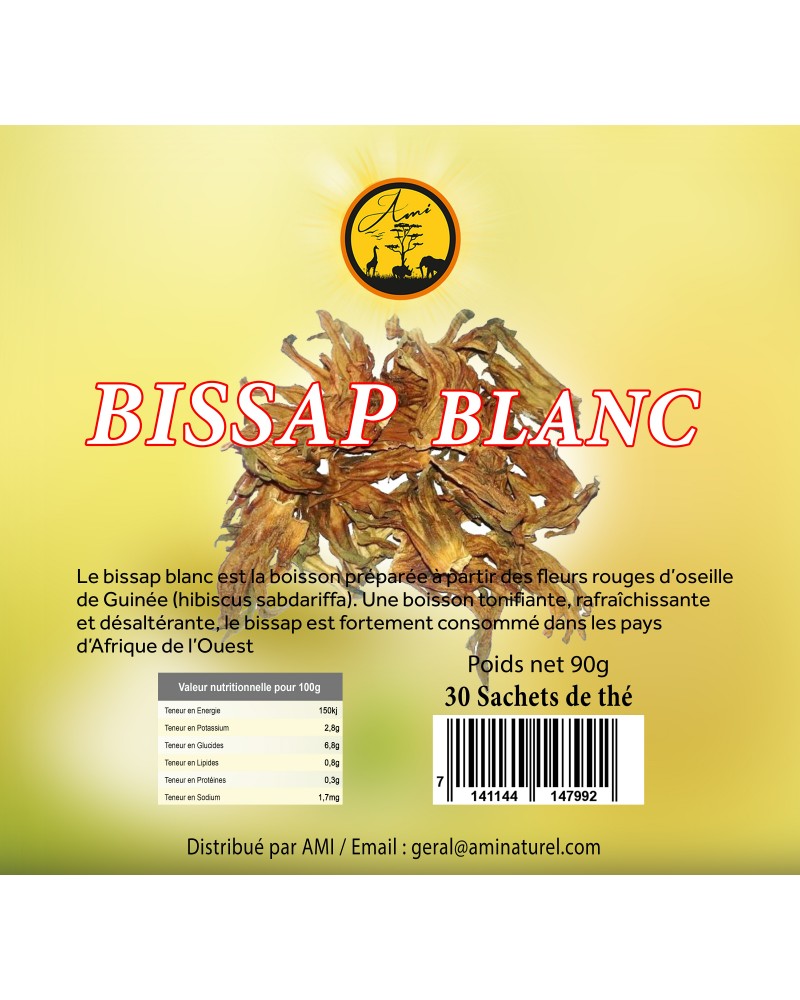 Le bissap est la boisson préparée à partir des fleurs rouges d'oseille de Guinée( hibiscus sabdariffa). Boisson rafraîchissante et désaltérante, le bissap est fortement consommé dans les pays d'Afrique de l'Ouest. Mode de préparation : porter à ébullition les fleurs séchées pendant 5 minutes et verser du sucre dans le sirop recueilli qui parfume fortement l'eau bien fraîche dans laquelle on le melange
