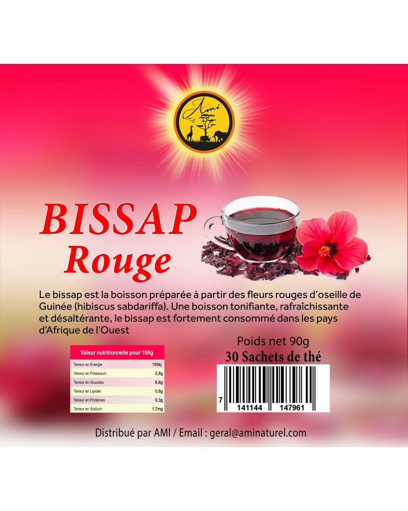 Le bissap est la boisson préparée à partir des fleurs rouges d'oseille de Guinée( hibiscus sabdariffa). Boisson rafraîchissante et désaltérante, le bissap est fortement consommé dans les pays d'Afrique de l'Ouest. Mode de préparation : porter à ébullition les fleurs séchées pendant 5 minutes et verser du sucre dans le sirop recueilli qui parfume fortement l'eau bien fraîche dans laquelle on le melange