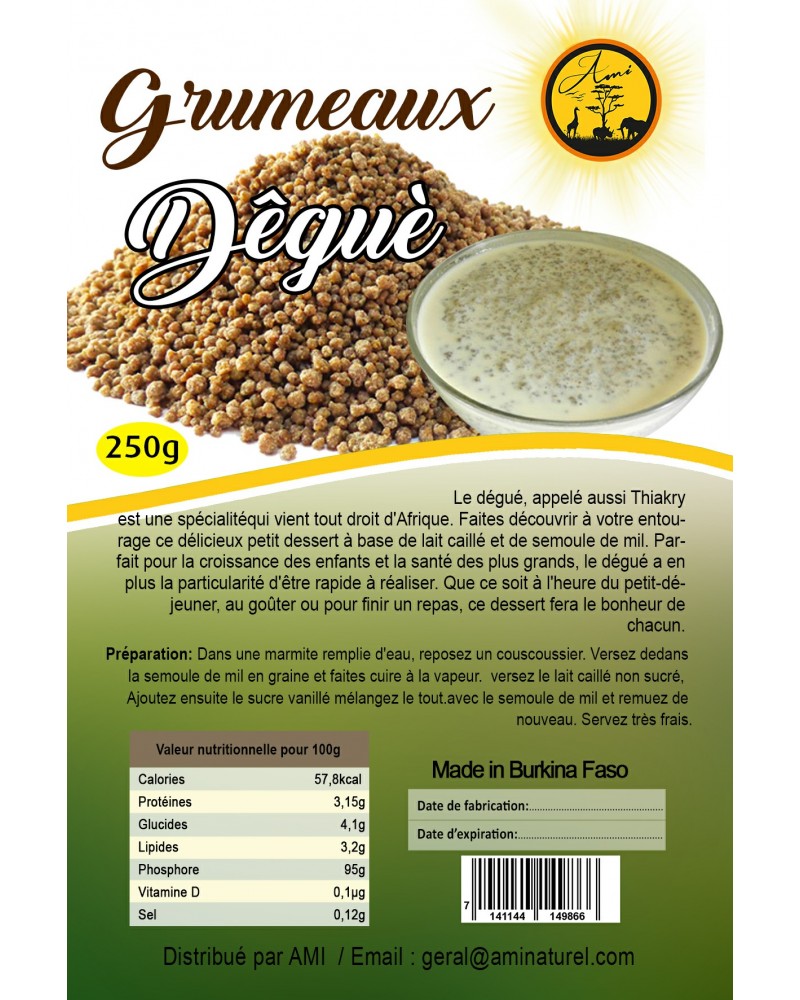 Le dégué, appelé aussi Thiakry est une spéciacialité qui vient tout droit d’Afrique. Faites découvrir à votre entourage ce délicieux petit déssert à base de lait caillé eet de semoule de mil. Parfait pour la croissance des enfants et la santé des plus grands, le dégué a en plus la particularité d’être rapide à réaliser. Que se soit à l’heure du petit-déjeuner, au goûter ou pour finir un repas, ce dessert fera le bonheur de chacun.