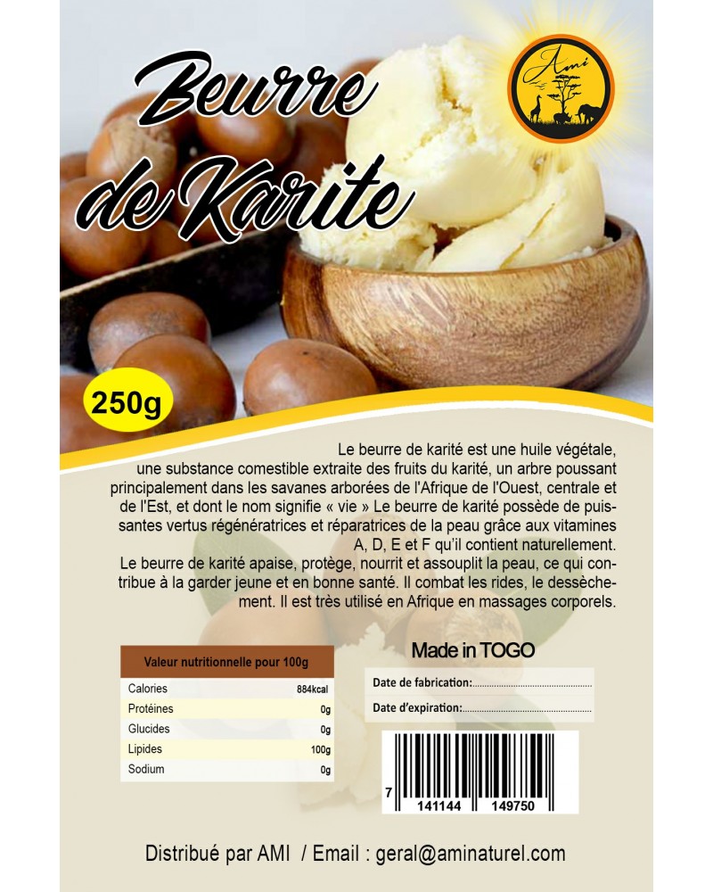 Le beurre de karité possède de puissantes vertus régénératrices. Le karité apaise, protège, nourrit et assouplit la peau, grâce aux vitamines qu'il contient naturellement. Il combat les rides